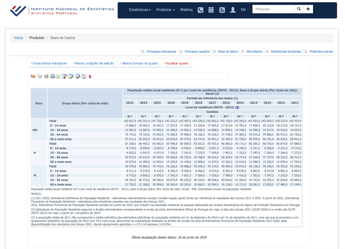 Os dados de referência que vou usar são os da PORDAT/INE. Há uma ligeira discrepância entre os dados da PORDATA e os do INE, mas as tendências são as mesmas.