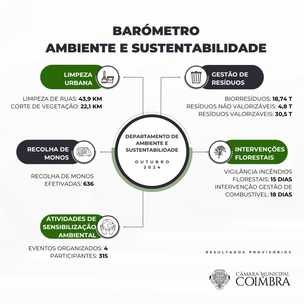 A Câmara Municipal (CM) de Coimbra tem vindo a divulgar, na segunda quinzena de cada mês, o denominado Barómetro do Ambiente e da Sustentabilidade, com o objetivo de reforçar a transparência e a comunicação com os cidadãos.