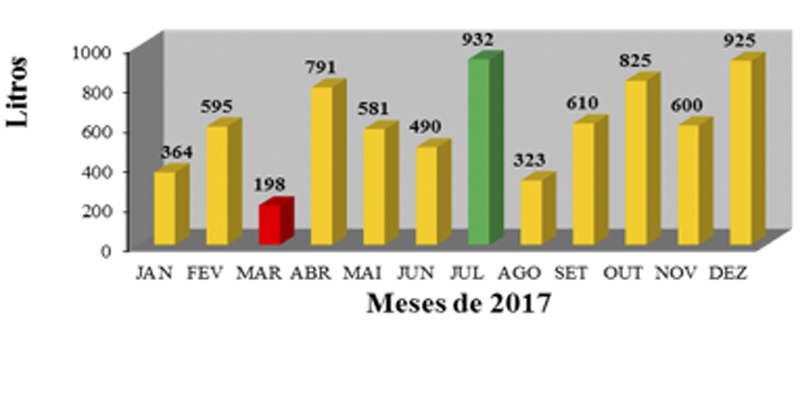 O gráfico seguinte ilustra a recolha mensal de monos no ano de 2017.