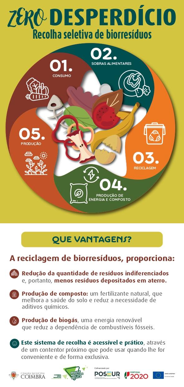 Determinada a ter ZERO DESPERDÍCIO, a Câmara Municipal vai dar mais um passo no desenvolvimento sustentável do concelho, através da recolha dos chamados biorresíduos (sobras alimentares) e do seu encaminhamento para valorização, o que permitirá reduzir a deposição de resíduos em aterro e possibilitará a produção de fertilizante e gás.