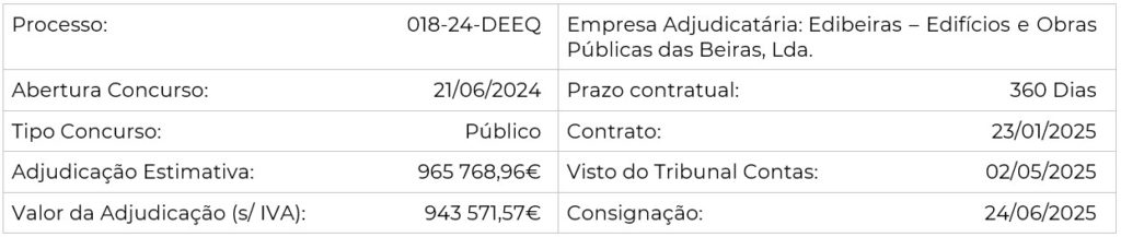 A Direção de Fiscalização da obra será efetuada pela Divisão de Edifícios e Equipamentos Municipais, sendo a fiscalização dos trabalhos associados às especialidades de Instalações Elétricas, ITED, SADI, SDI, Mecânicas de AVAC, Produção AQS e Gestão Técnica Centralizada, efetuada pela DEITE.