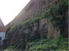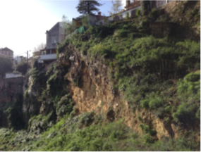 Esta zona do talude apresenta-se totalmente “mascarada” com deposição de calcite em toda a sua superfície, relacionada com a escorrência de águas superficiais e/ou relacionada com algum acidente tectónico, não evidenciado na carta geológica.