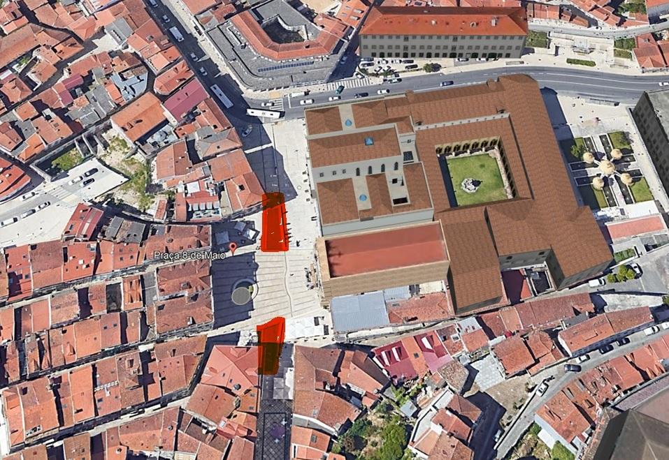 Pretendendo dotar-se de melhores condições de acessibilidade as rampas da Praça 8 de Maio, propõe-se fazer uma pequena intervenção, apenas ao nível dos apoios laterais que facilitam a circulação de pessoas com mobilidade reduzida. Dessa forma, pretendem dotar-se ambas as rampas com corrimões laterais de apoio, substituindo-se as guardas existentes e colocando corrimãos no lado dos muros, que neste momento não existem.