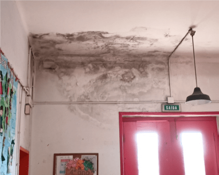 Como consequência das anomalias identificadas, registam-se no interior do edifício vários locais com infiltrações sendo de assinalar as infiltrações provocadas pelas anomalias na cobertura, nas salas de aula do 1º andar, com manchas bolores e escorrimentos de água;