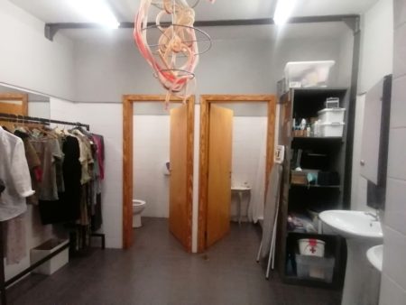 – Relocalizar a sanita na primeira cabina e compatibilizar a rede de águas e esgotos. Apoios em aço inox na parede de acordo com o citado diploma;