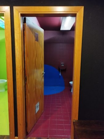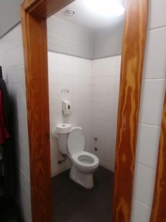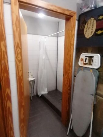 – Demolir o murete que define a base de chuveiro na segunda cabine e definir base no pavimento, com inclinação e respetiva impermeabilização apropriadas para banho em cadeira de rodas. Apoios em aço inox na parede e banco rebatível. Manutenção da alimentação de água;