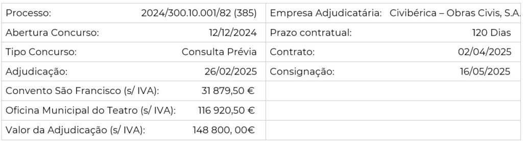 Obras para assegurar a acessibilidade ao exterior do piso 0 do Convento de São Francisco e ao piso térreo da Oficina Municipal de Teatro / Teatrão