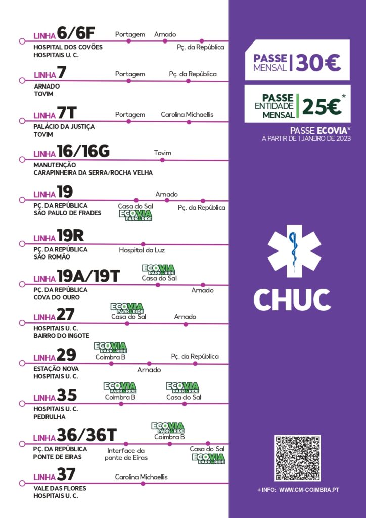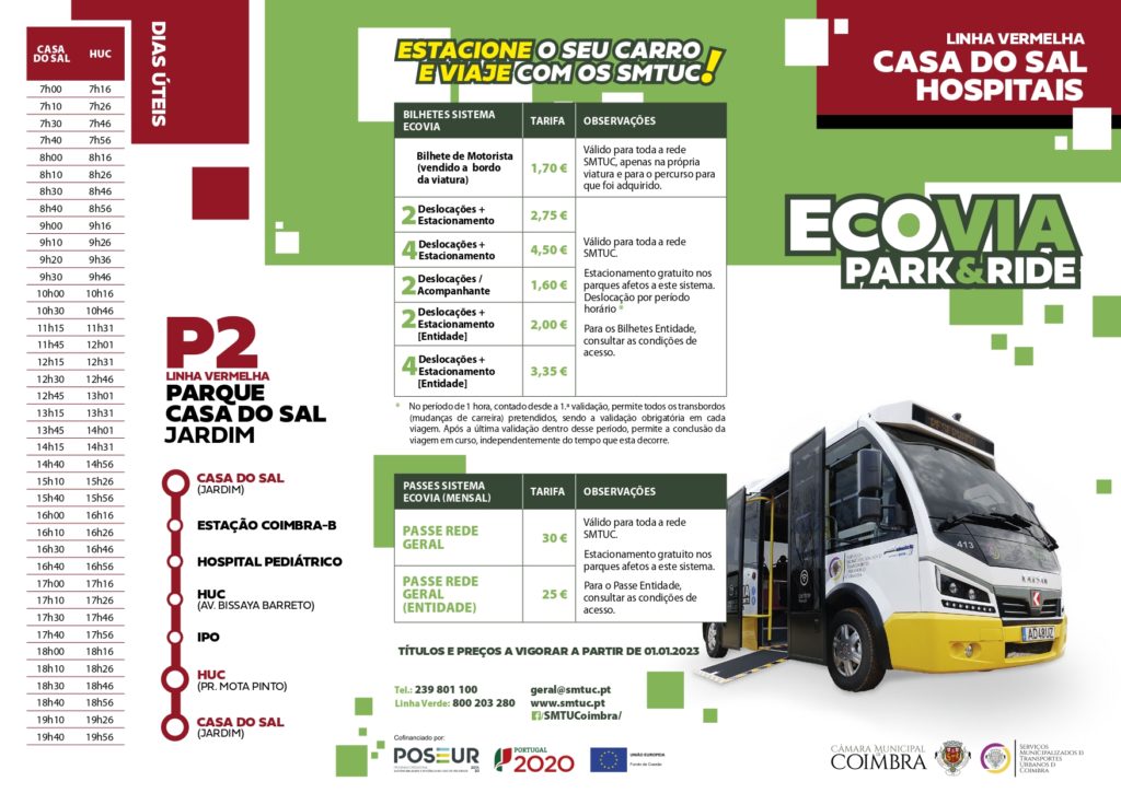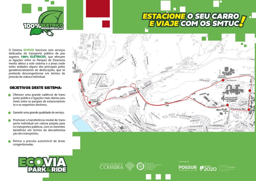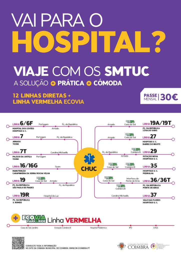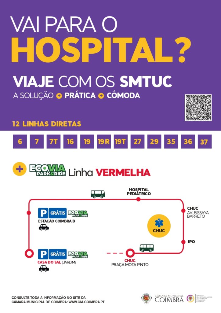 Também se recomenda a utilização da Linha Vermelha da ECOVIA: Estação de Coimbra-B – Casa do Sal – Hospitais.