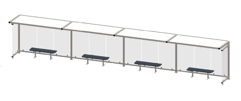 Pretendem instalar-se abrigos de passageiros de grandes dimensões, cada um com cerca de 12m de comprimento (4 módulos de 3m cada um com um banco) com proteção de vidro e iluminação no teto, o que por si só já ajuda na iluminação do espaço. Serão abrigos tipo “Leziria” da “Cabena” ou equivalente com iluminação de teto.
