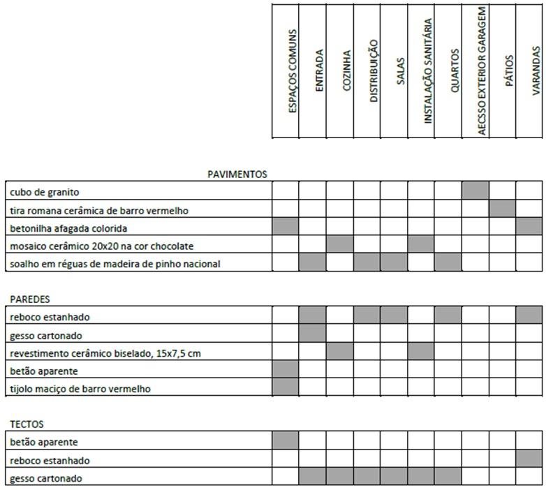 Imagem n.º 7 – Mapa de Revestimentos e Acabamentos Interiores