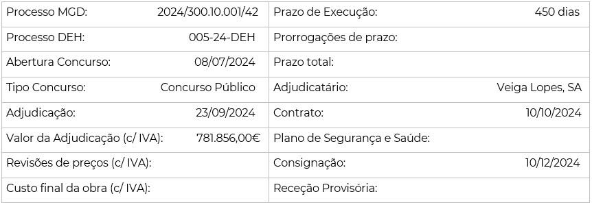 A fiscalização e a coordenação da segurança da obra é efetuada pelo Departamento de Edifícios e Equipamentos Municipais.