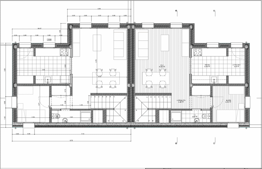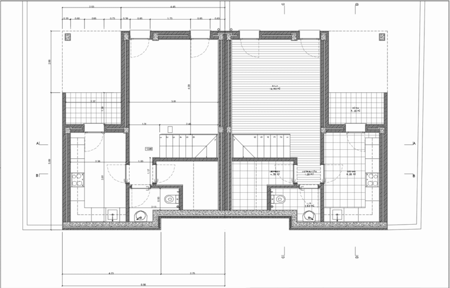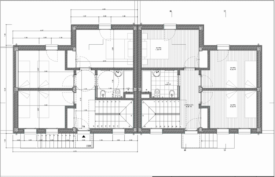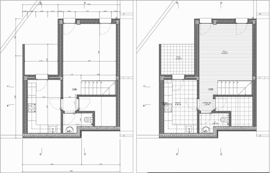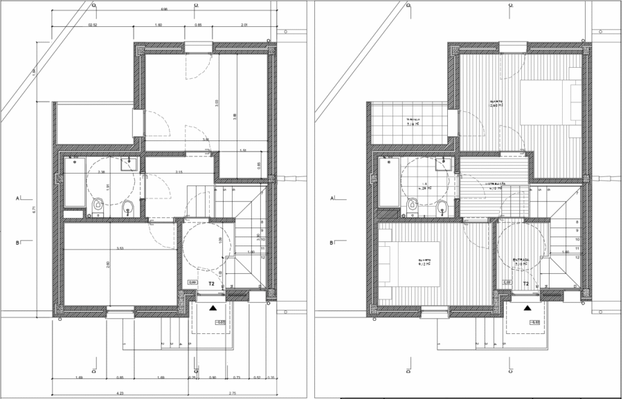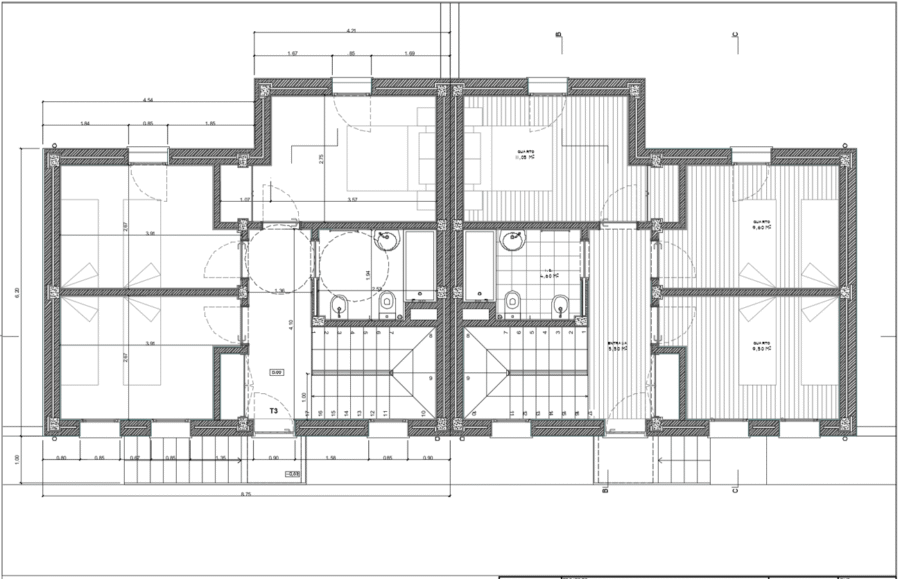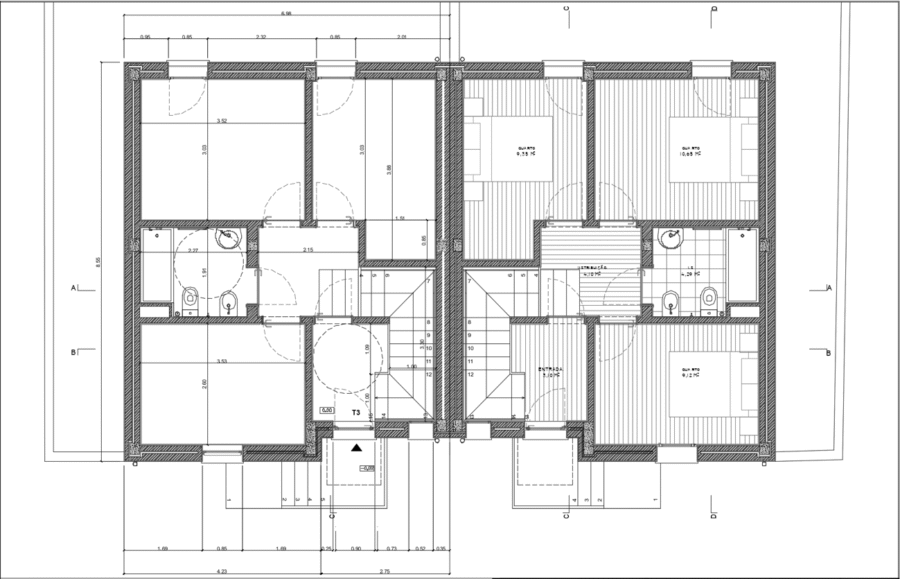 As habitações/edifícios a intervencionar do Tipo B1, contemplam a demolição da habitação existente e a construção de uma nova – 12 de tipologia T3 com 108,56m2 de área bruta de construção e 60,56m2 de área de implantação; e 2 de tipologia T4 com 122,10m2 de área bruta de construção e 61,05m2 de área de implantação.
