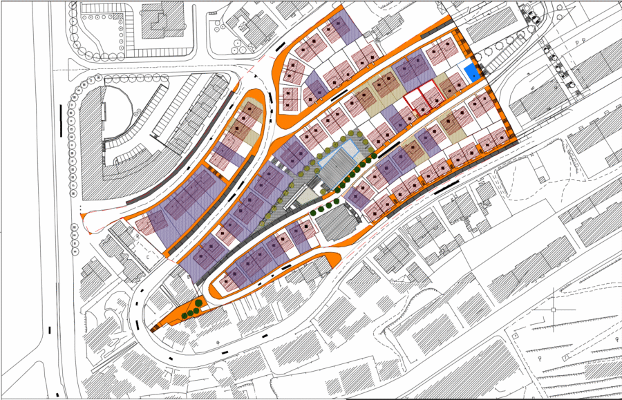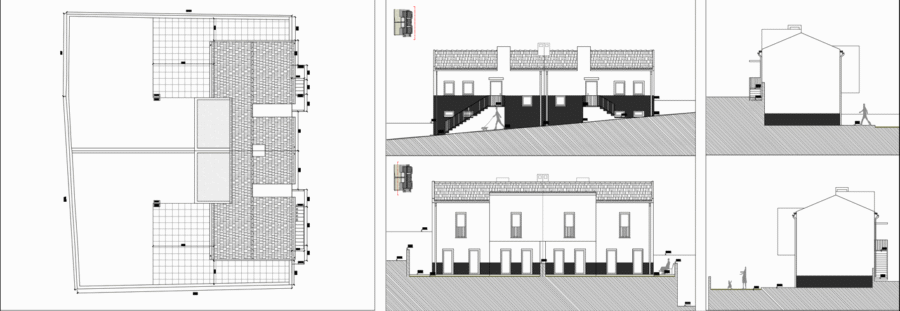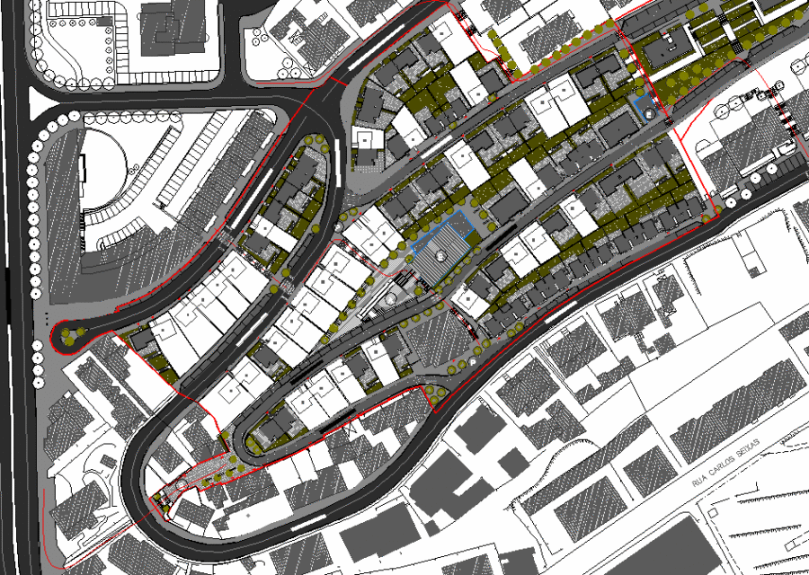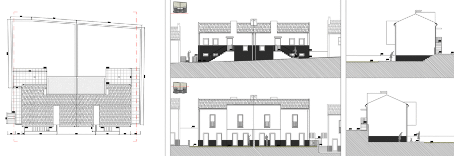 Deste modo as novas edificações implantam-se no lugar das existentes, mantendo as cotas de soleira existentes e respeitando o polígono de implantação das habitações originais, somente reajustado na profundidade da intervenção.