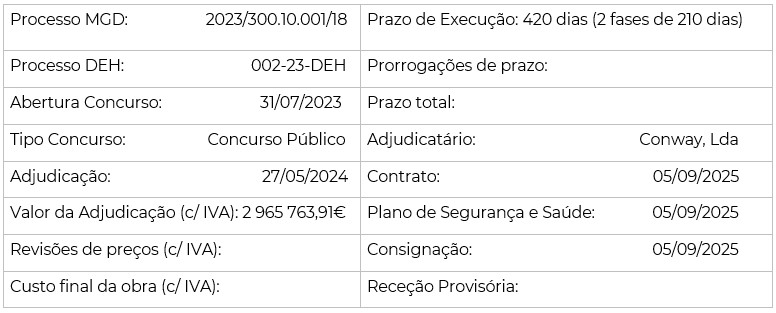 A fiscalização e a coordenação da segurança da obra são efetuadas pelo Departamento de Edifícios e Equipamentos Municipais.
