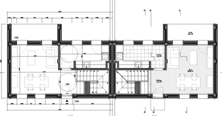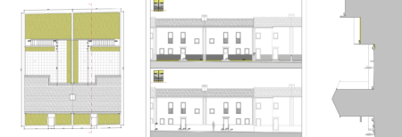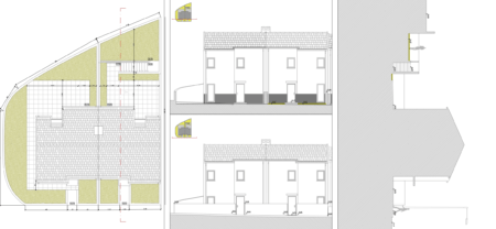 Apesar de se tratar de uma intervenção de raiz, o facto de se estar a intervir num conjunto construído, constituído na sua maioria por conjuntos de habitações geminadas, é determinante para o desenho final, que procura na manutenção de determinadas características morfológicas do edifício existente e de relação com o espaço público garantir a coerência formal, volumétrica e arquitectónica do conjunto, ainda que sem negar a sua contemporaneidade.