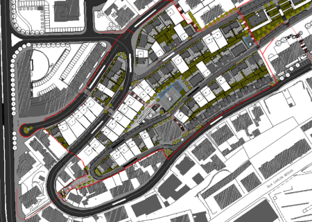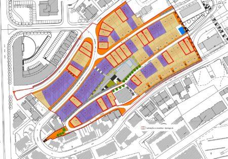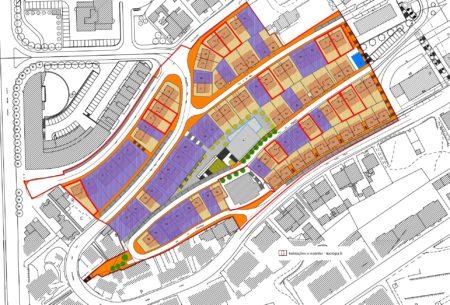 Planta com arranjo dos espaços exteriores dos lotes