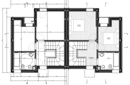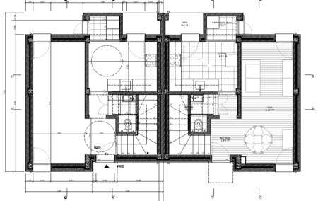 As habitações/edifícios a intervencionar do Tipo A, contemplam a demolição da habitação existente e a construção de uma nova, de tipologia T2, com 81,83 m2 de área bruta de construção e 46,70m2 de área de implantação.