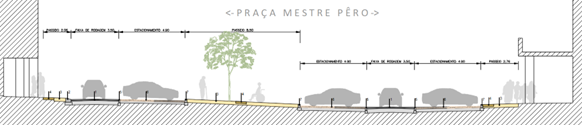 Por conseguinte, procura-se aumentar as zonas de permanência do peão não só para articular todos os movimentos de pessoas, como permitir a existência de zonas de estar, eventuais esplanadas, espaços ajardinados tratados e acessíveis, articulando de uma forma mais eficaz com a linha de comércio local existente na vertente Sul.