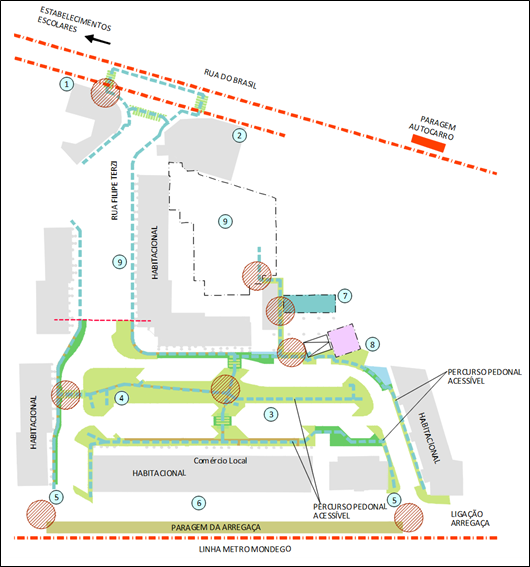 - Ligação à Rua do Brasil e ao eixo de circulação no sentido dos Estabelecimentos Escolares [eixo Avenida Navarro] (1)