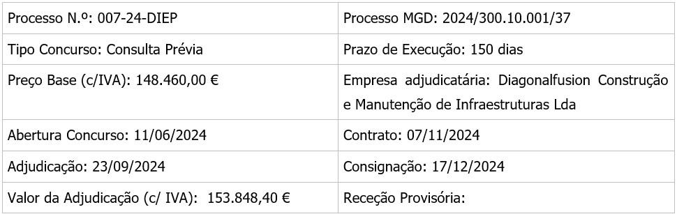 Eletricidade, Iluminação Pública e Telecomunicações – Após análise da Estimativa Orçamental de 72.660,00€ para enterrar os cabos aéreos (que contemplaria novas colunas com luminária LED, armários de distribuição, bem como novas ligações aos edifícios), e por se tratar de uma zona rural com baixa densidade habitacional, considerou-se que não se deve incluir esta ação na presente empreitada. Esta decisão foi articulada com o Sr. Presidente da Junta de Freguesia Sr. Horácio Costa a 5/1/2023.